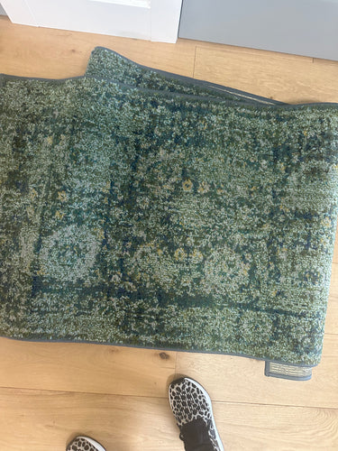 Long Green Wool Area Runner Rug