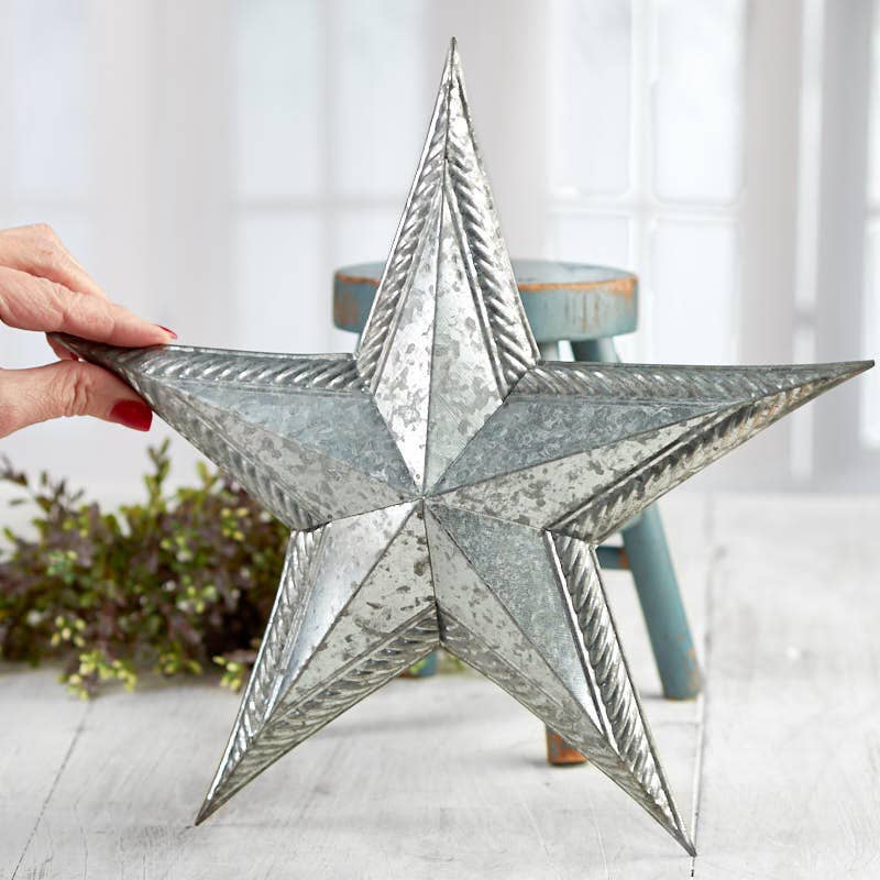 Add a rustic look with this Embossed Metal Star—a classic accent for farmhouse, primitive, and country decor. The weathered finish gives it a timeworn look, making it perfect for holiday decorating or year-round display.