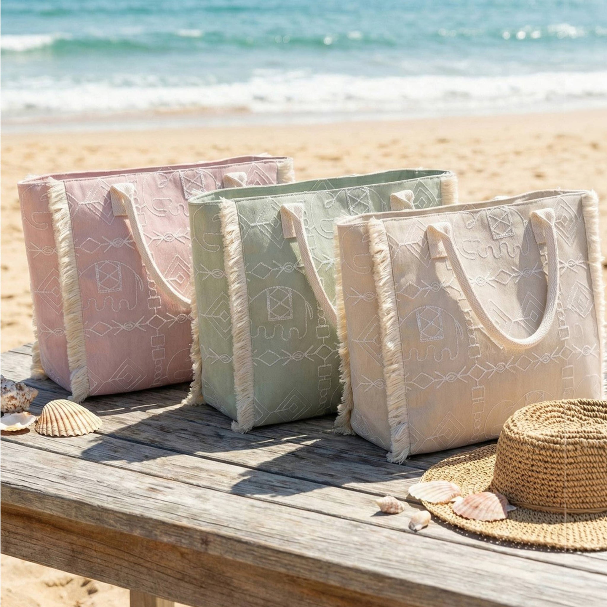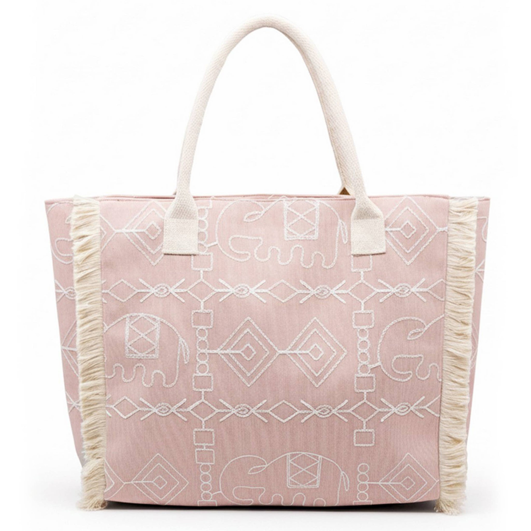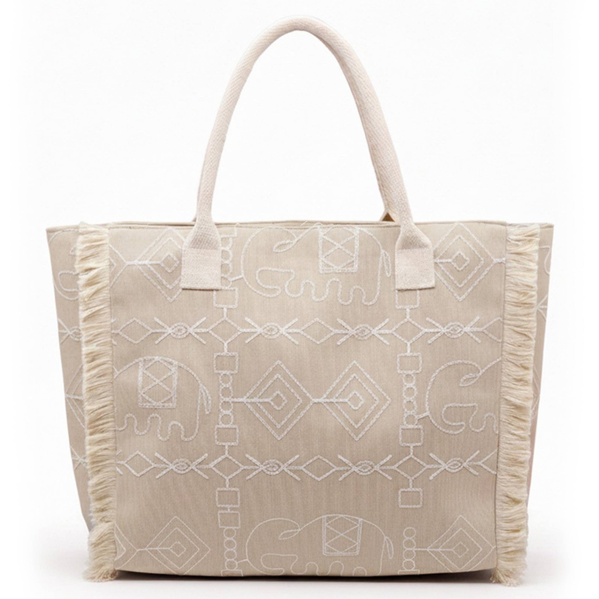 Boho Geometric Elephant Print Fringe Tote Bag