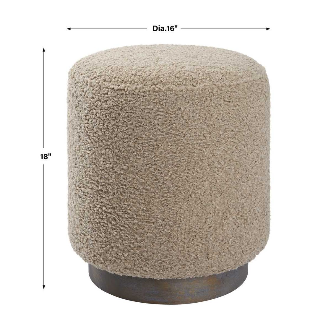 This plush ottoman is covered in a casual latte toned faux shearling with a natural walnut stained oak base. Versatile and stylish, this piece can be used as a seat or footrest, grouped together or as a singular accent piece.