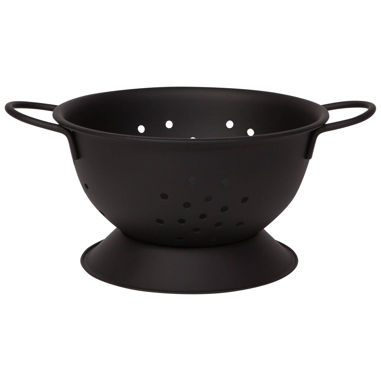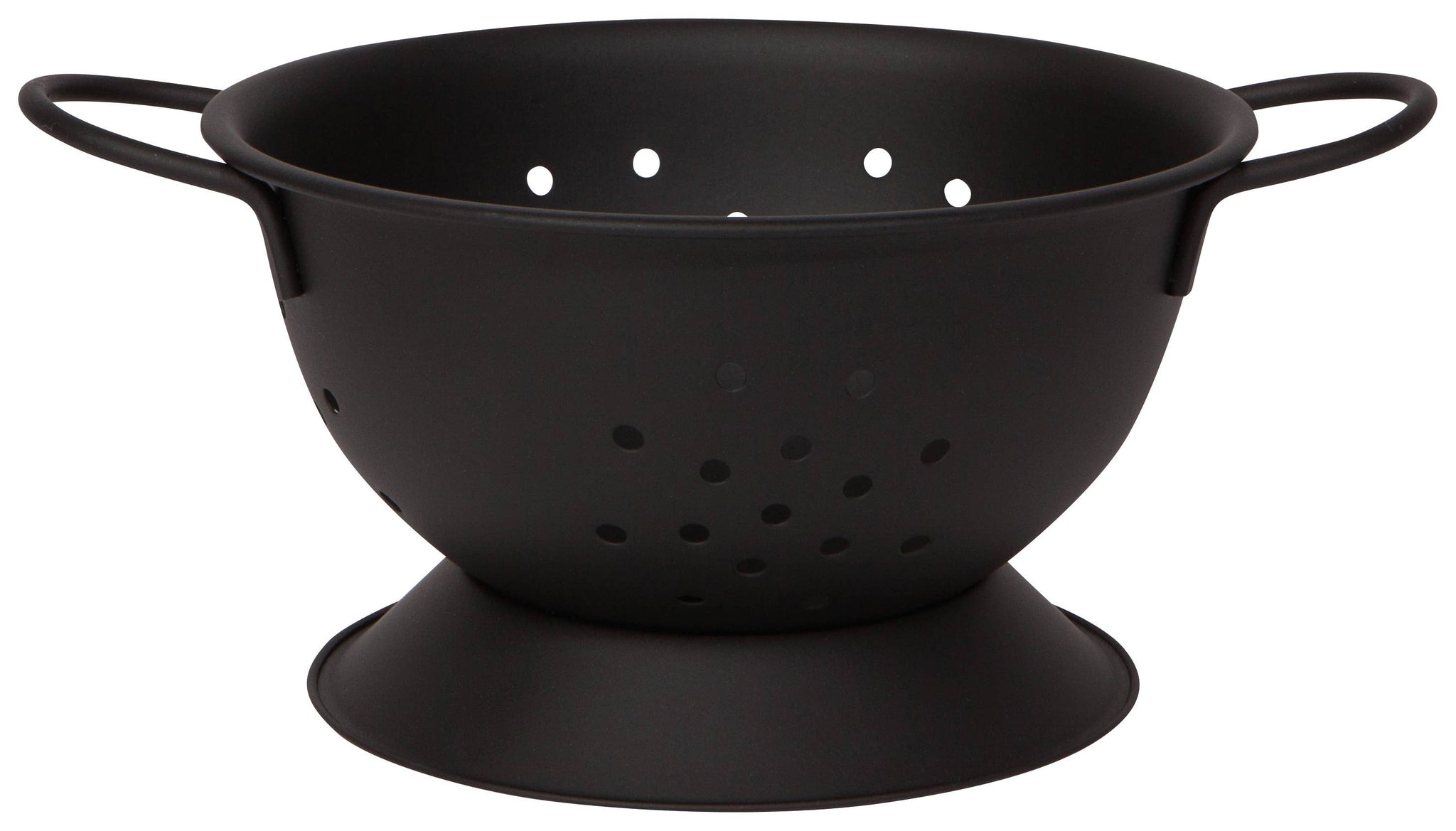 Demonstrate your elegant efficiency when you cook for friends and family aided by this small matte black colander. Made from powder-coated steel, our practical colanders are long-lasting additions to home kitchens. They're ideal for everyday meal prep tasks such as straining pasta, rinsing fruit, and washing salad greens. With an elevated flat base for added stability on countertops, they also make an eye-catching bowl for fresh-picked veggies from the garden.