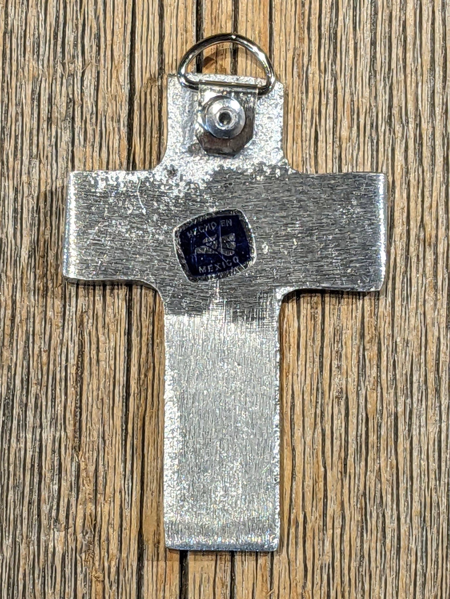 Mini pewter dead tree cross, hook for hanging. Mexico
