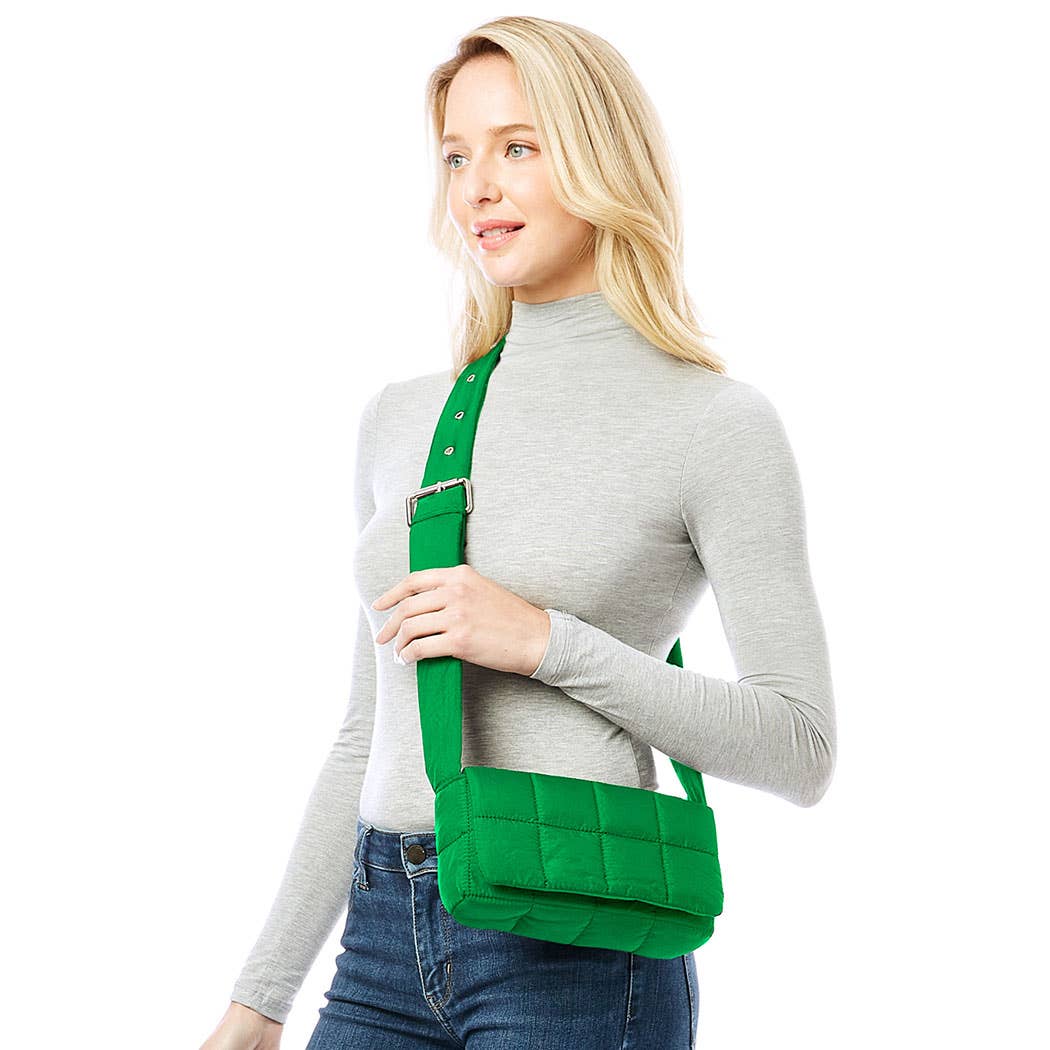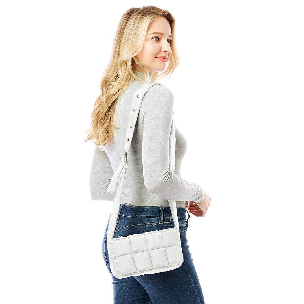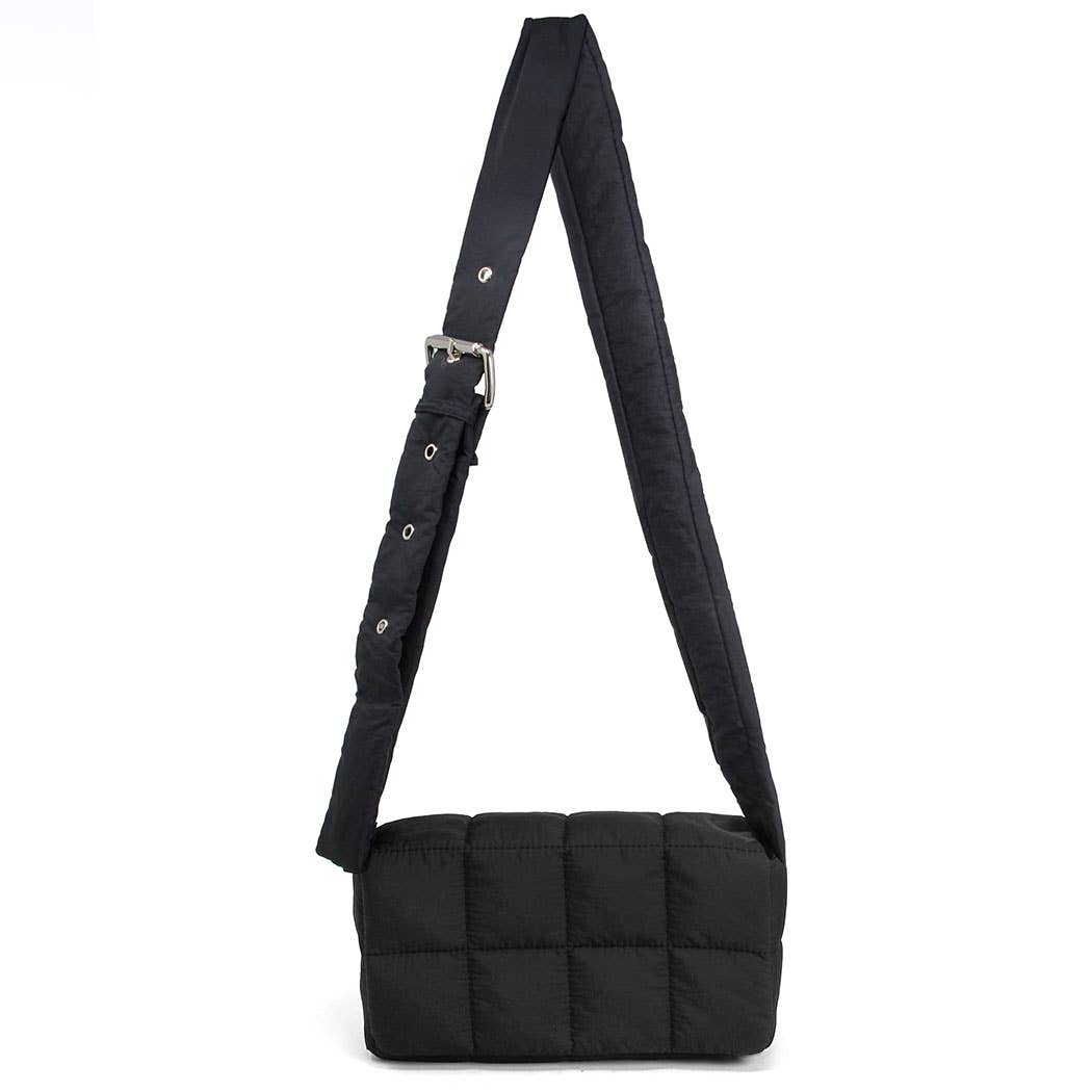 Quilted Puffer Crossbody Bag - Cross Strap Adjustable - Magnetic Closure - 1 Zipper Pocket Inside