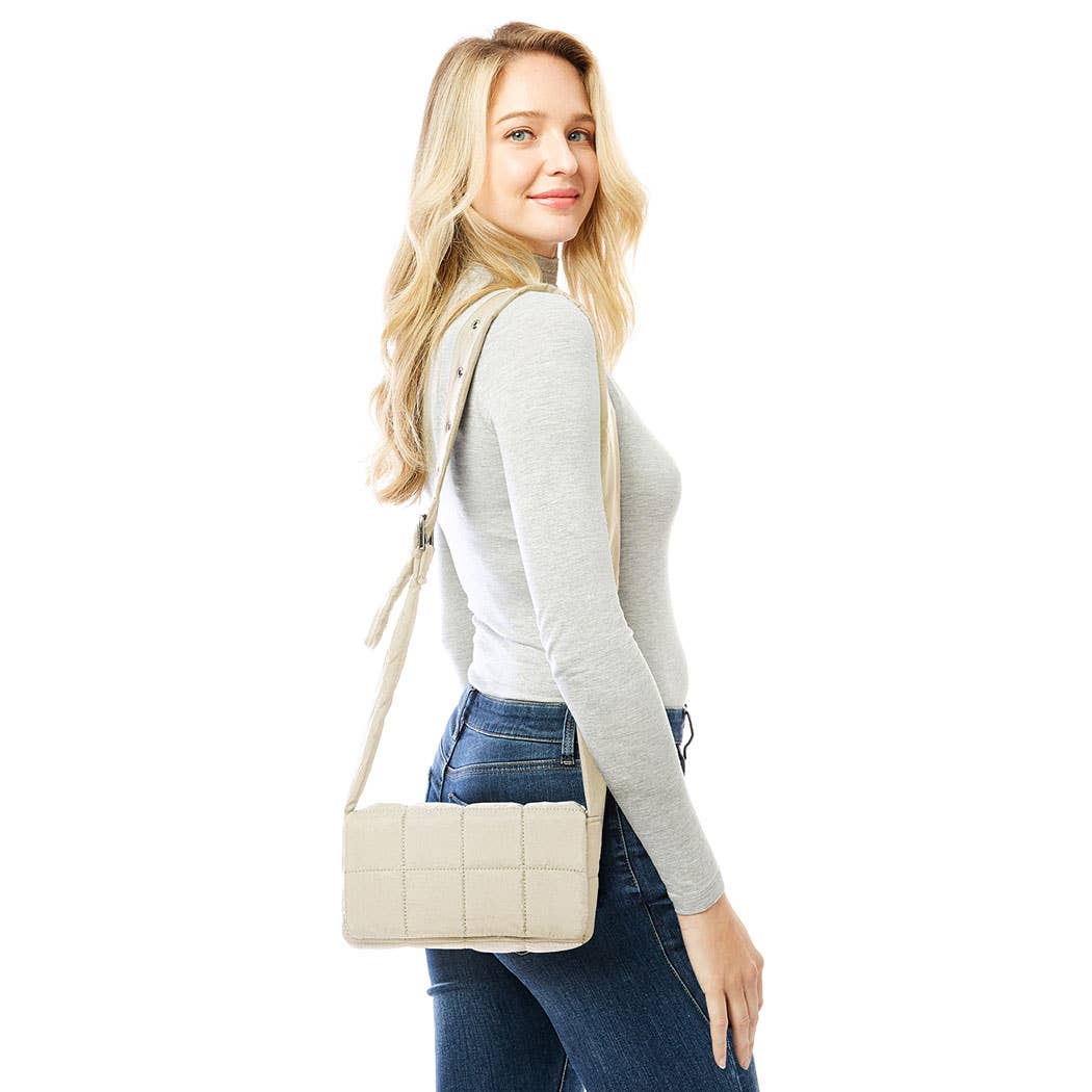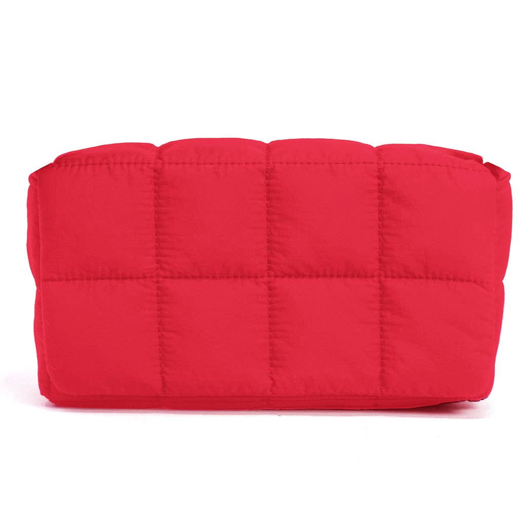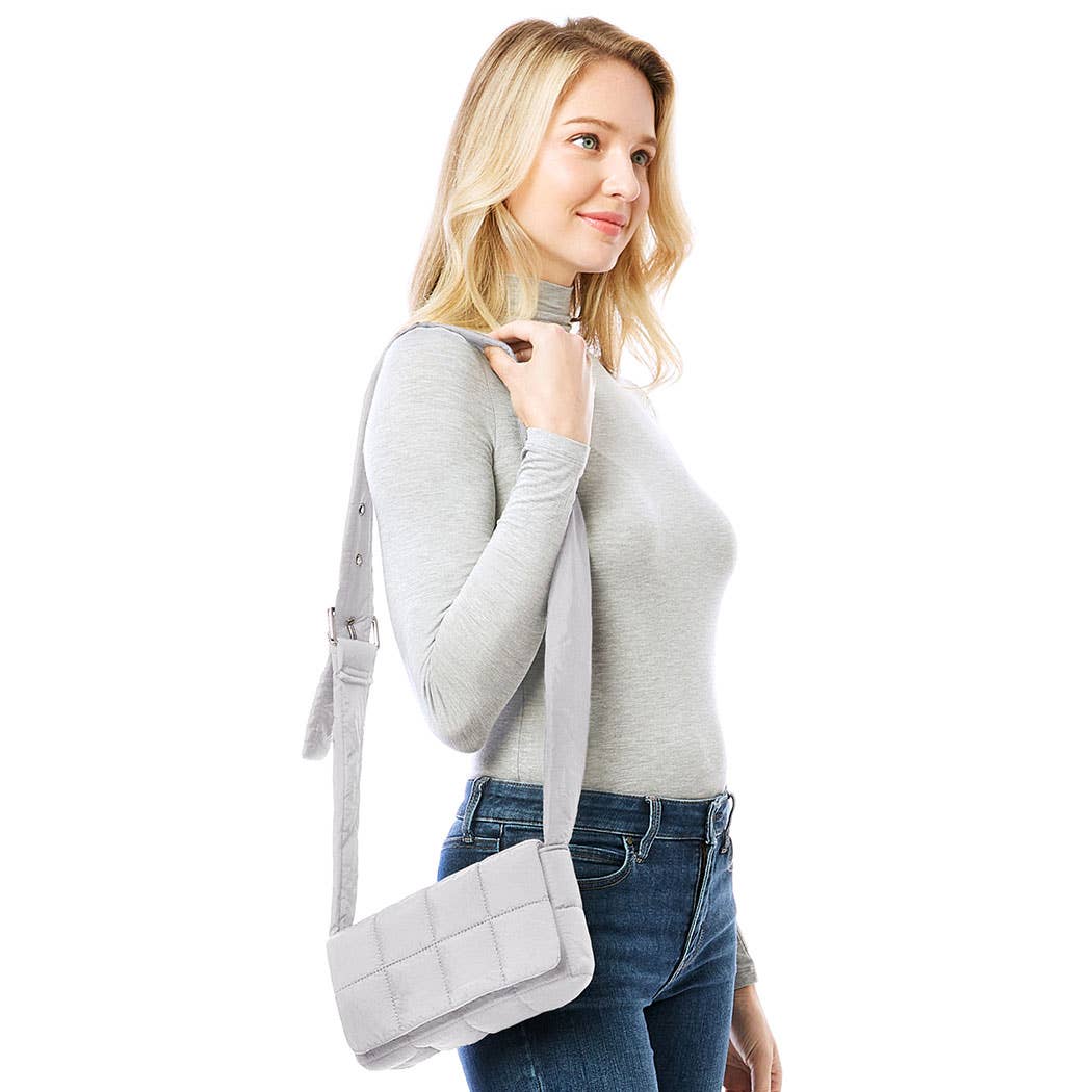 Quilted Puffer Crossbody Bag - Cross Strap Adjustable - Magnetic Closure - 1 Zipper Pocket Inside