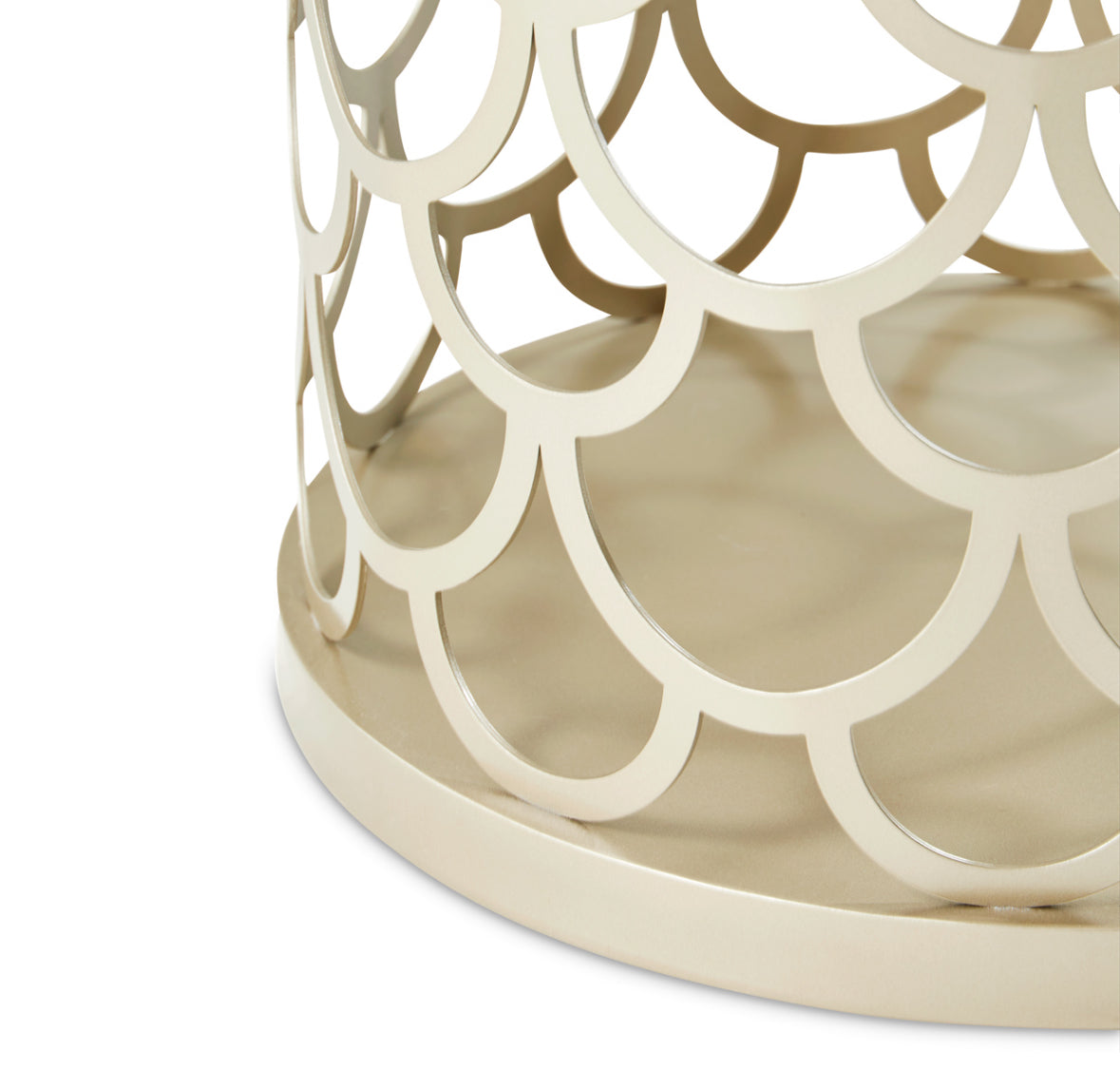 A statement of elegance, the Marisia Side Table brings artistry to your space. Its cultured marble top provides a luxurious surface, while the champagne gold metal base features an intricate scalloped pattern, adding depth and visual interest. A powder-coated finish ensures lasting beauty, making this table a striking accent in any setting.