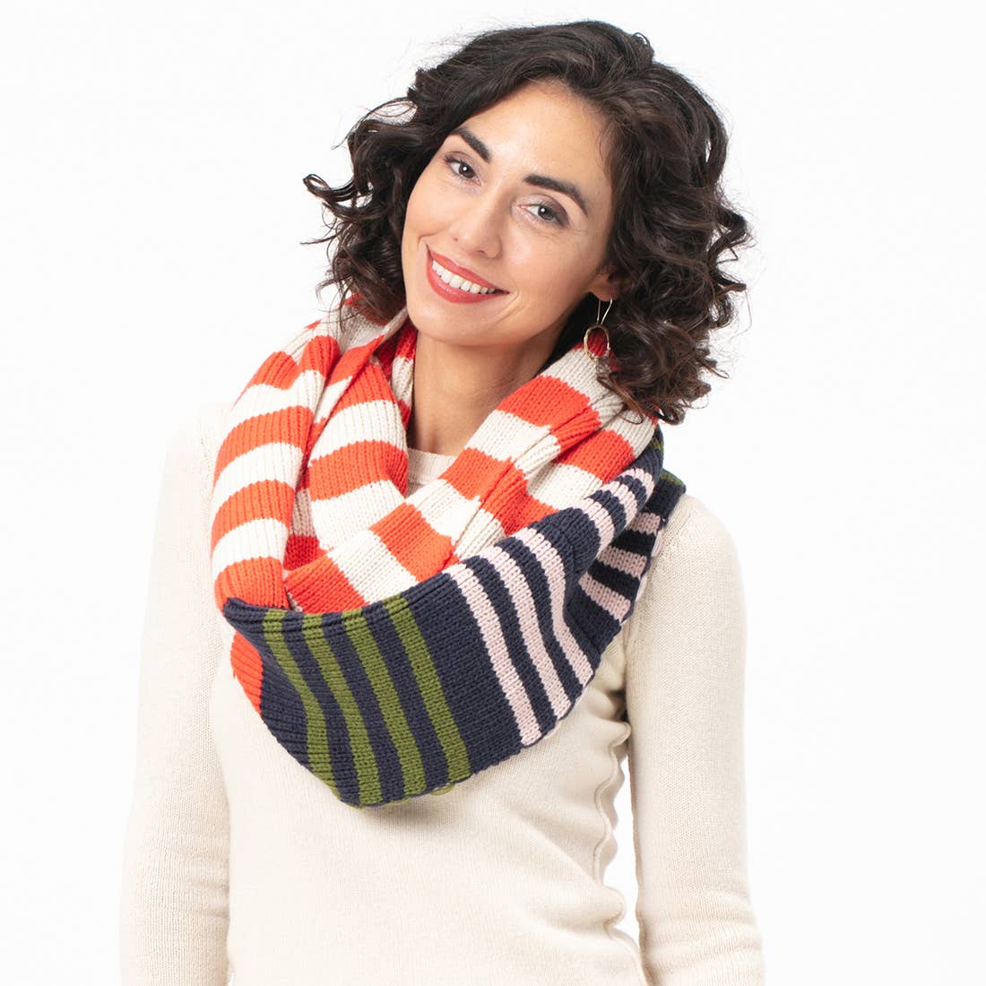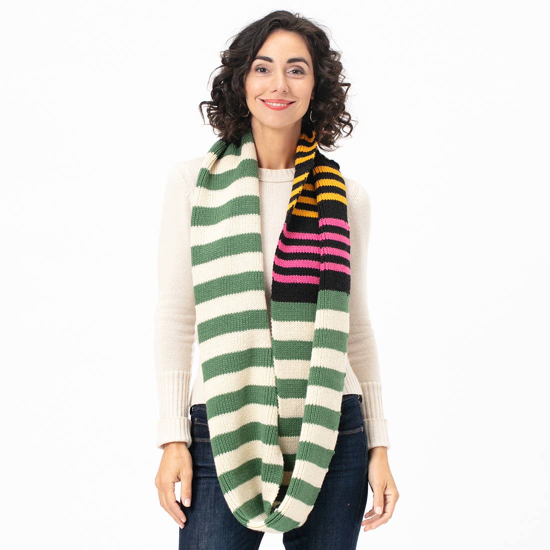 Stay on trend this fall and winter with our infinity scarves! Sophisticated yet fun, this classic infinity shape is a tried and true winner. Canterbury features a color-block style of different stripes perfect for keeping color in your cold weather wardrobe!