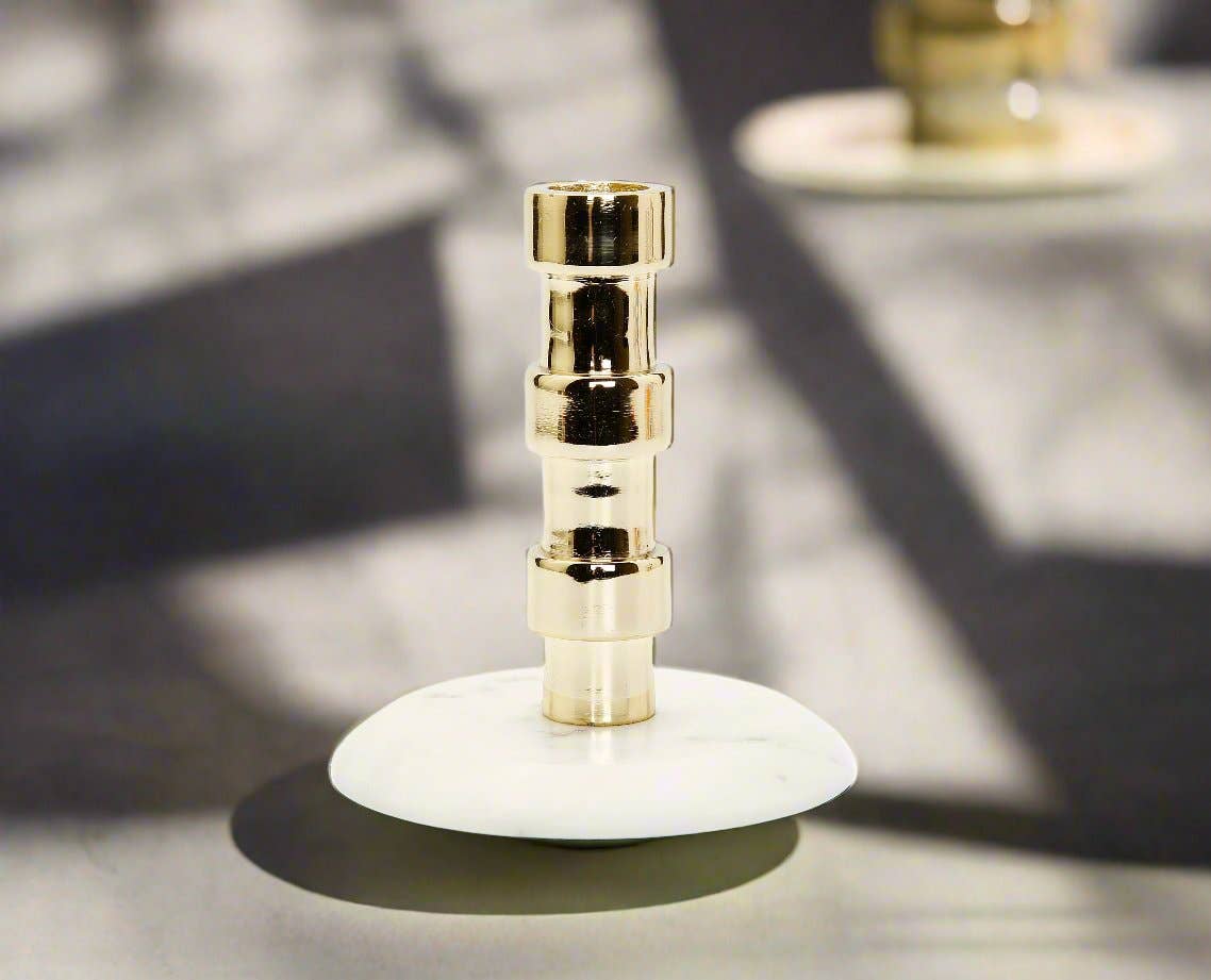 Gold Taper Candle Holder/Marble Base