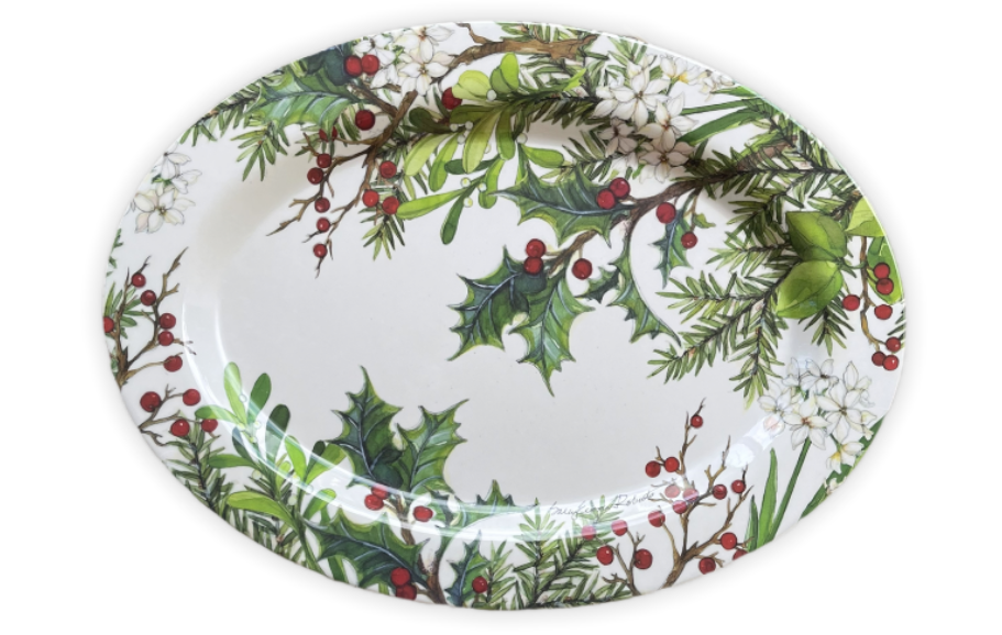 Shatter-resistant bamboo Holly & Berries Oval Serving Platter. Each eco-friendly Bamboo Tray combines the look and feel of upscale dinnerware, all while keeping the Earth & ocean in mind.