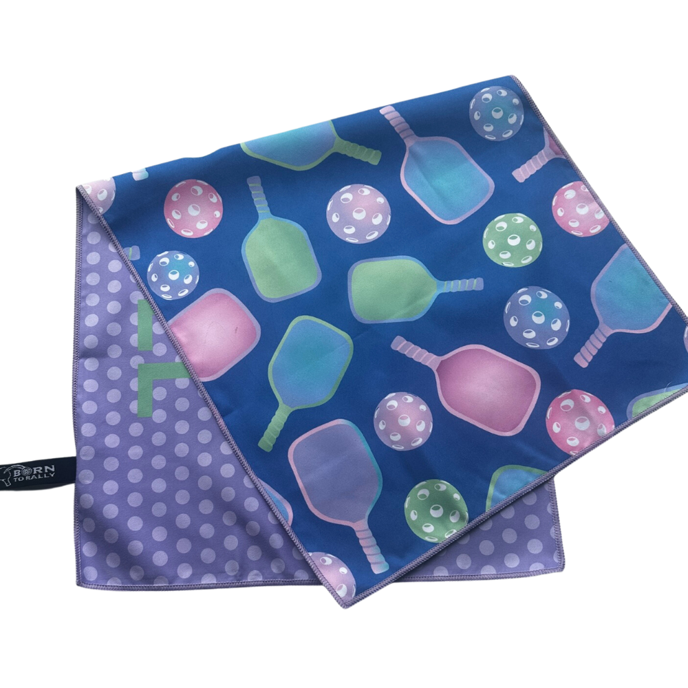 Our Born to Rally sports towels have TWO premium designs which make them the best athletic Pickleball towel on the market. Each towel has ultra-soft, absorbent, quick-drying, and soft-to-the-touch premium microfiber with fashionable designs on each side.